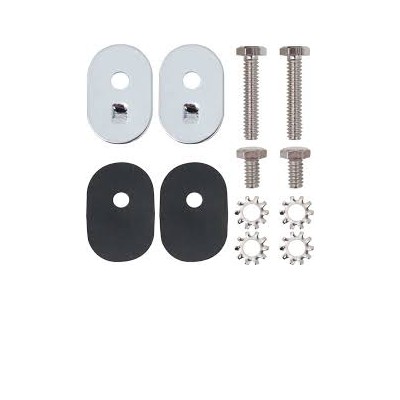 This kit installs the glass channel located in rear of front door. Made to adjust door glass in and out for proper alignment. Sold as a pair. Kit includes 2-chrome plated plates with seals and correct screws.