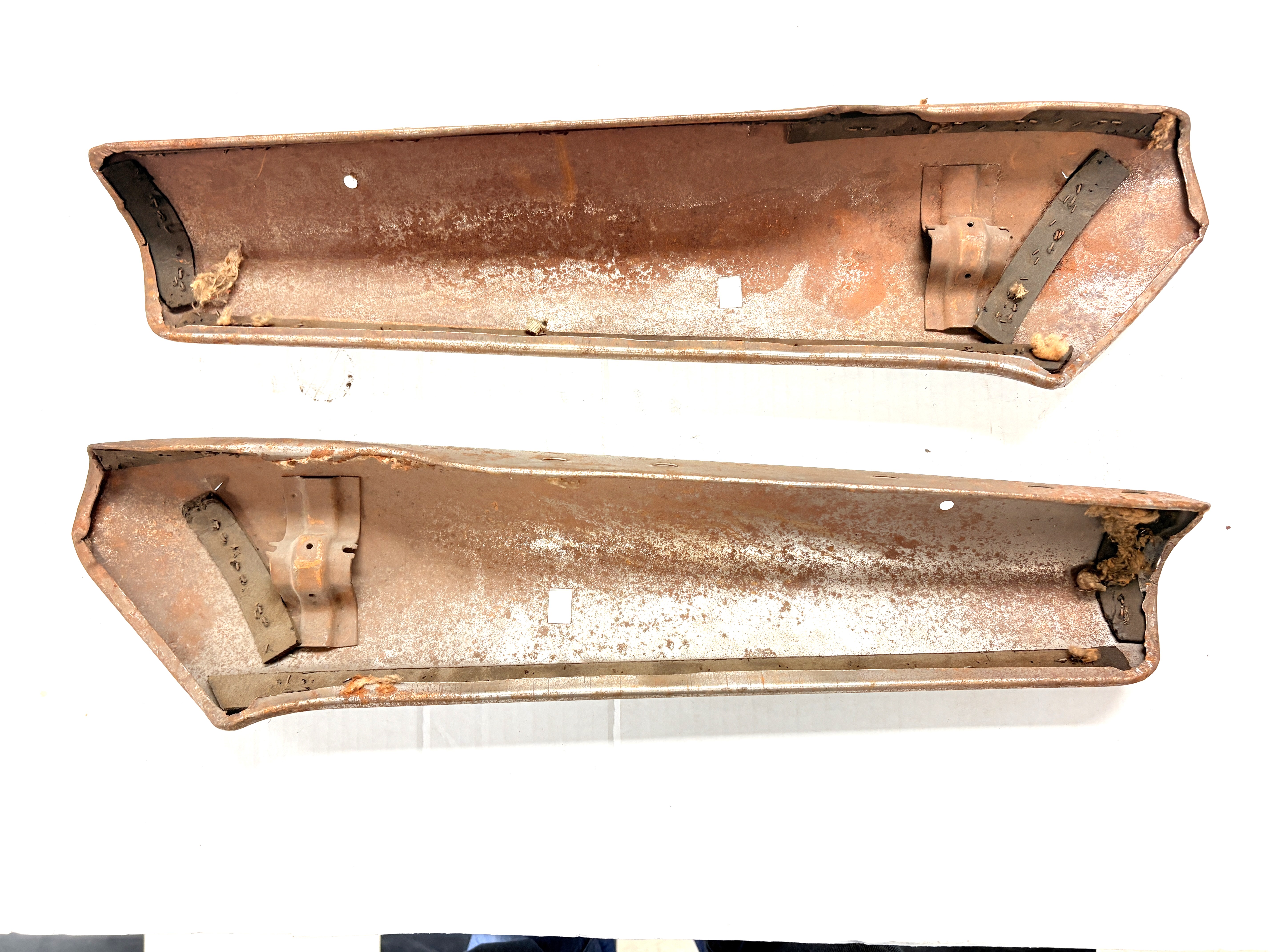 Used pair of upper seat shells for a 1955-56 2-dr front seat. Light surface rust, NO rot. Will easily clean up.