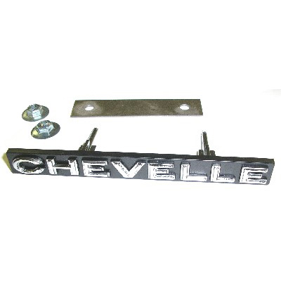 Reproduction grille script found on lower driver side of Chevelle grille. Sold complete with retainer bracket.