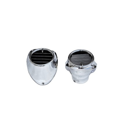 Reproductions of the factory chrome plated air conditioning dash vents. Sold as a pair. Can be adapted to use with aftermarket A/C systems to give the dash a factory look.
