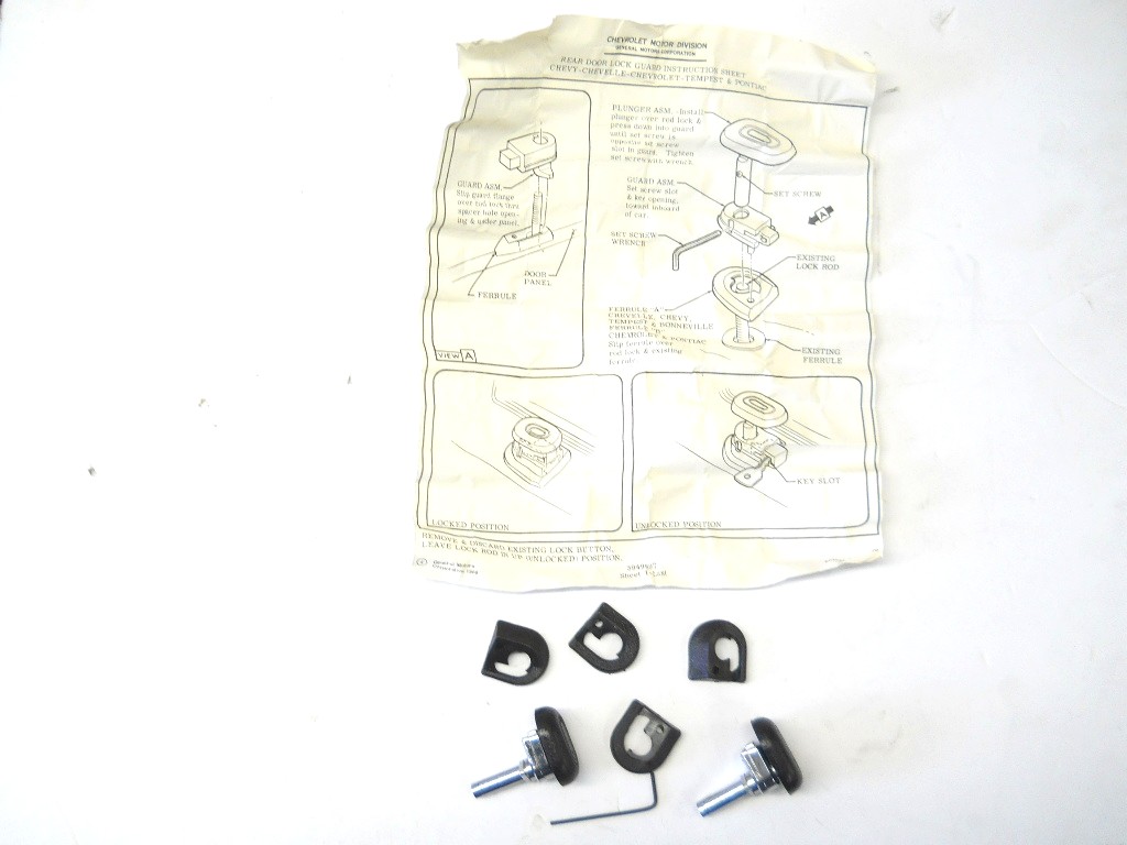 New Old Stock GM accessory rear door child safety lock guards. GM accessory # 993743. Sold as a pair for both rear doors. Comes with original instruction sheet.