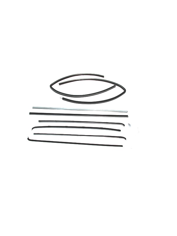 Sedan front door glass felt channel kit. Fits front doors for a Sedan, Sedan Delivery or 2-dr Wagon. 8-pc kit includes pre-bent channels, lower glass sweeps & vent glass run channels.