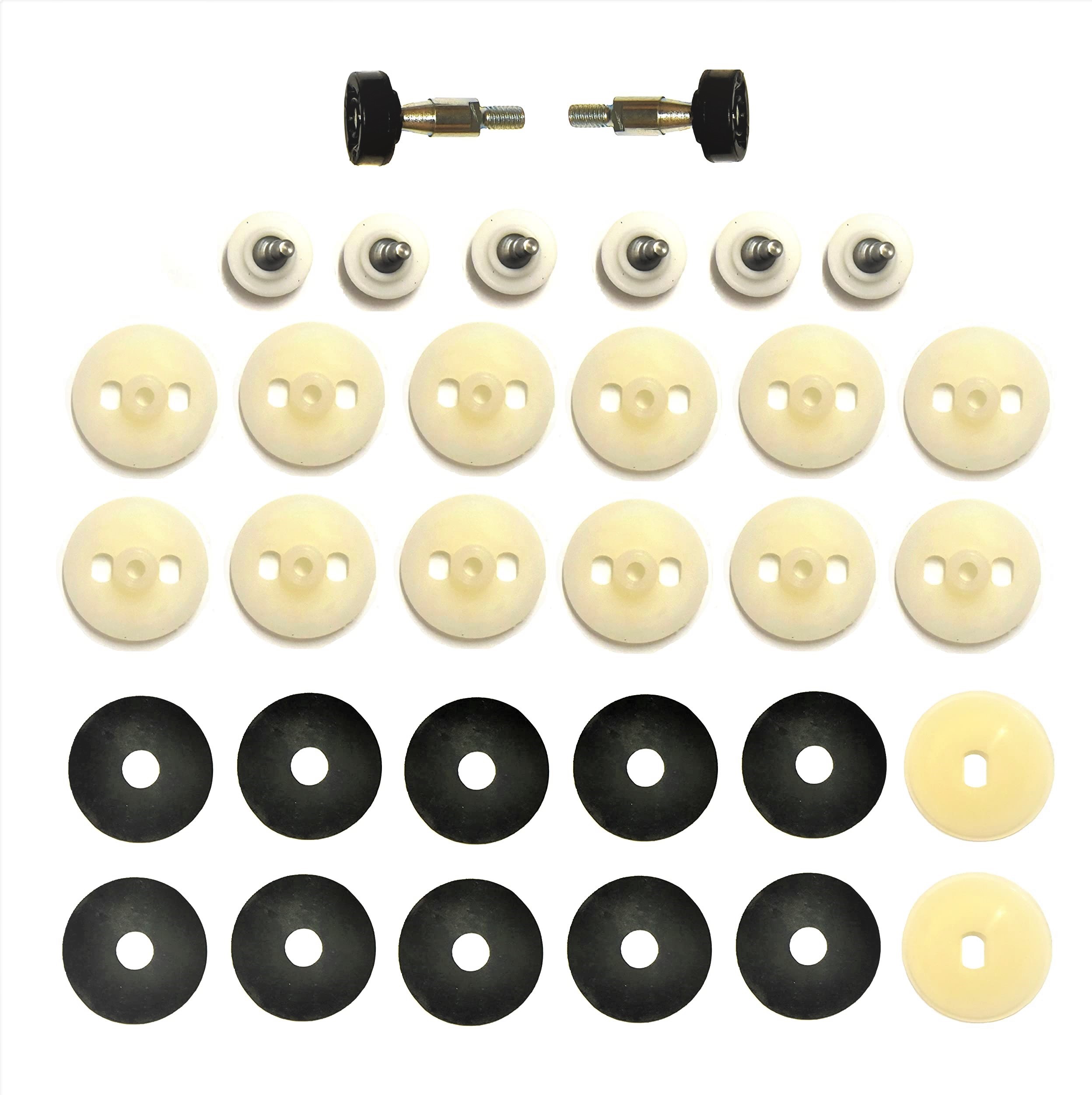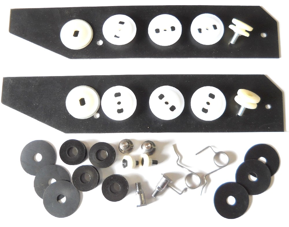 Door glass roller rebuild kit. Kit contains window regulator rollers and flat nuts with washers for attaching parts to glass.