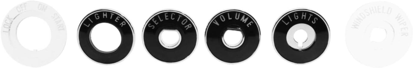 Assorted dash indicator bezels for 150/210 models. Has clear ignition and wiper bezel with black bezels and chrome trim for lights, lighter and radio bezels.  Our Price: $82.00
