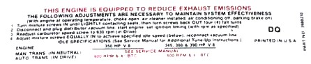 1970 CHEVELLE 396-350 4V EMISSION DECAL