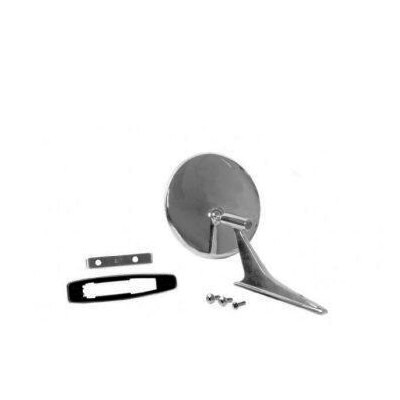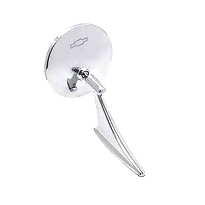 Reproduction round door mirror for a 1967 Camaro without Chevy bowtie logo. Fits left or right side. Comes complete with mounting hardware and gasket. Also fits most 1966-68 Chevrolet models.