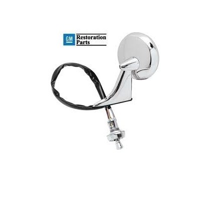 Reproduction of the drivers side mirror assembly. Includes, Chrome mirror, cable, mounting bracket, gasket, screws and knob. Licensed GM Restoration Part.