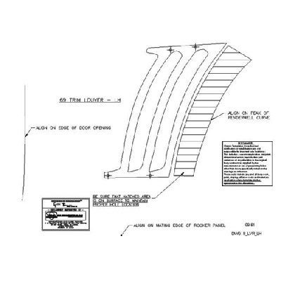 Digitally rendered full size template for correctly locating 1969 Camaro quarter louvers. Perfect when locating holes in new sheetmetal.