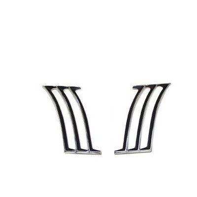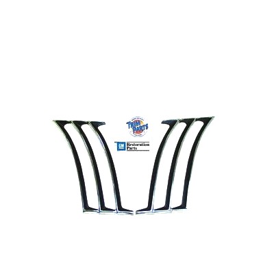 Side louver trim attaches to the rear quarter panel. Chrome plated with black accents. Includes attaching nuts. Sold as a pair.