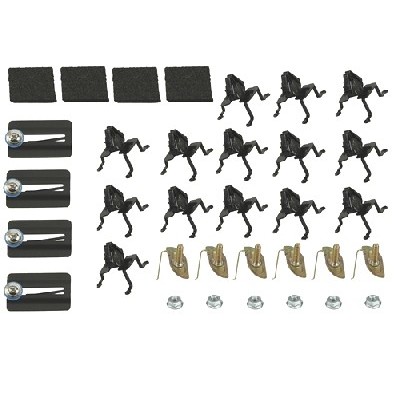 Complete lower Rally Sport molding installation kit. Includes everything required to install all six pieces. Clips, reproduction end plates, nylon washers and screws.