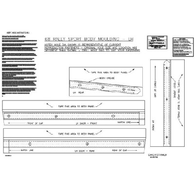 Digitally rendered full size templates for locating Rally Sport moldings on a 1968 Camaro. Perfect for cars with new sheetmetal or converting car to a Rally Sport.