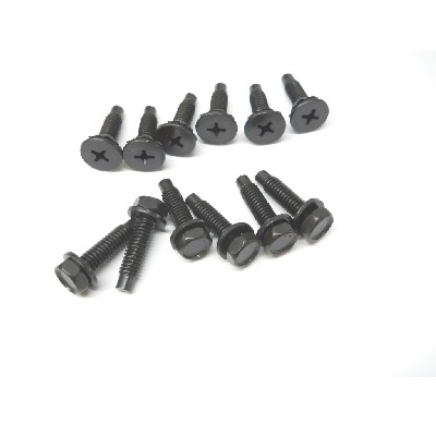 Screw set for fastening lower windshield clips for a 1967-69 Camaro. Also screws for windshield lower stop bracket.