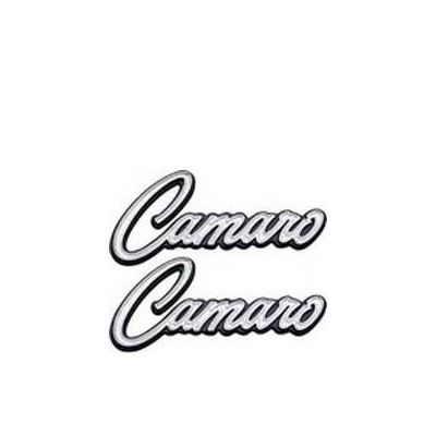 Reproduction door panel emblems for 1968-69 Camaro's with standard interior. Black background with "Camaro" in script lettering. Sold as a pair.