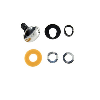 Vent window pivot stud that locking handle attaches to. Kit includes stainless cap pivot stud with rubber and fiber seals and waved tension washers. 6-piece kit per window.