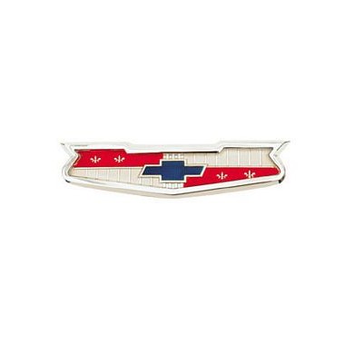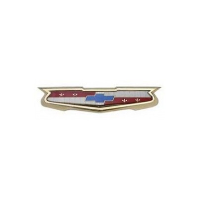 Complete trunk emblem assembly for a 1955 Chevrolet. Excellent reproduction.