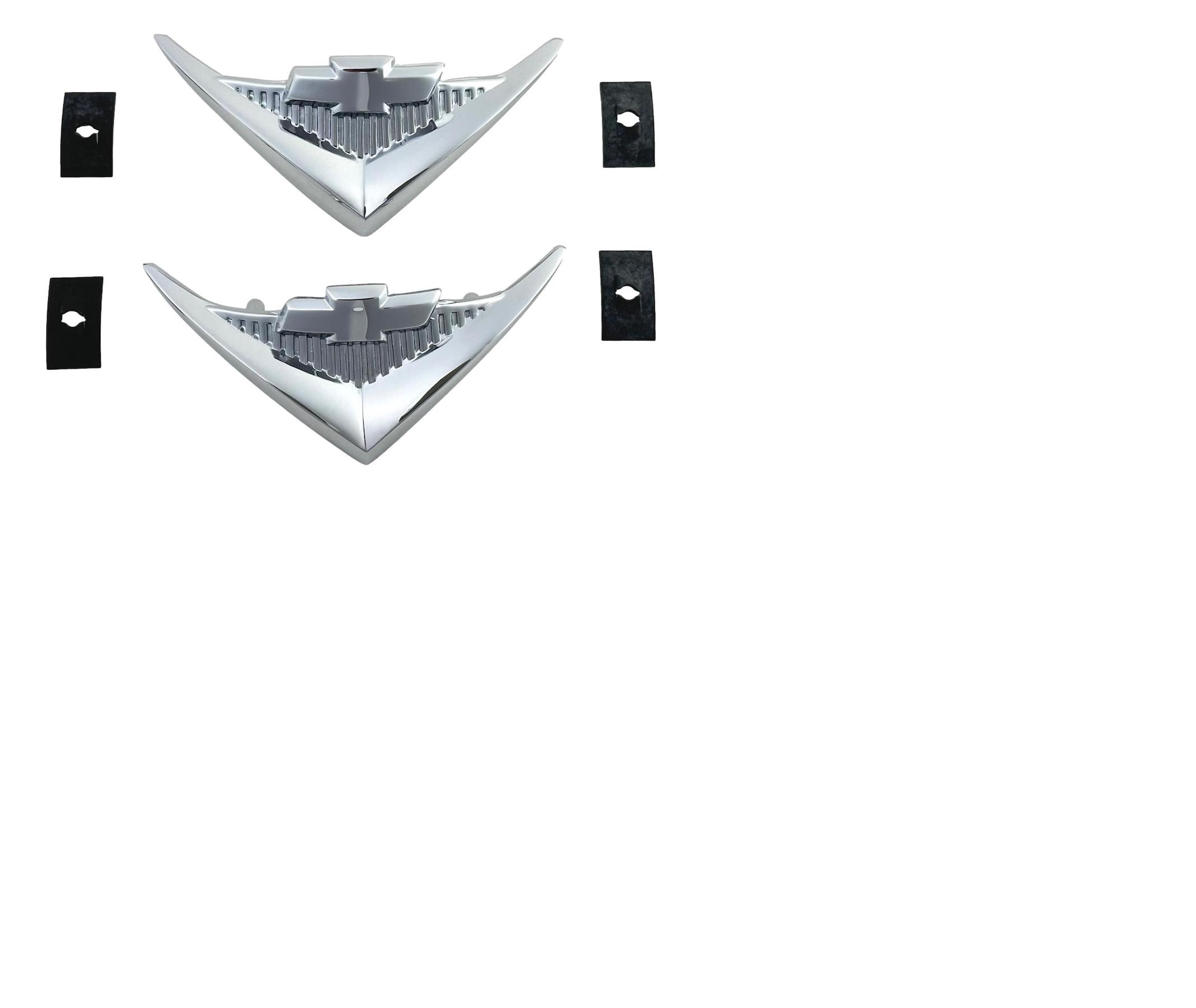 Chrome trunk Vee for 1956 Chevrolet models with V-8 engines. Sold with mounting hardware.
