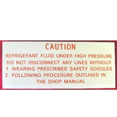 Decal that mounts on compressor of air conditioned cars.